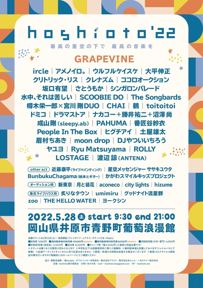 hoshioto'22 | 岡山県井原市青野町葡萄浪漫館にて開催される野外フェスティバル
